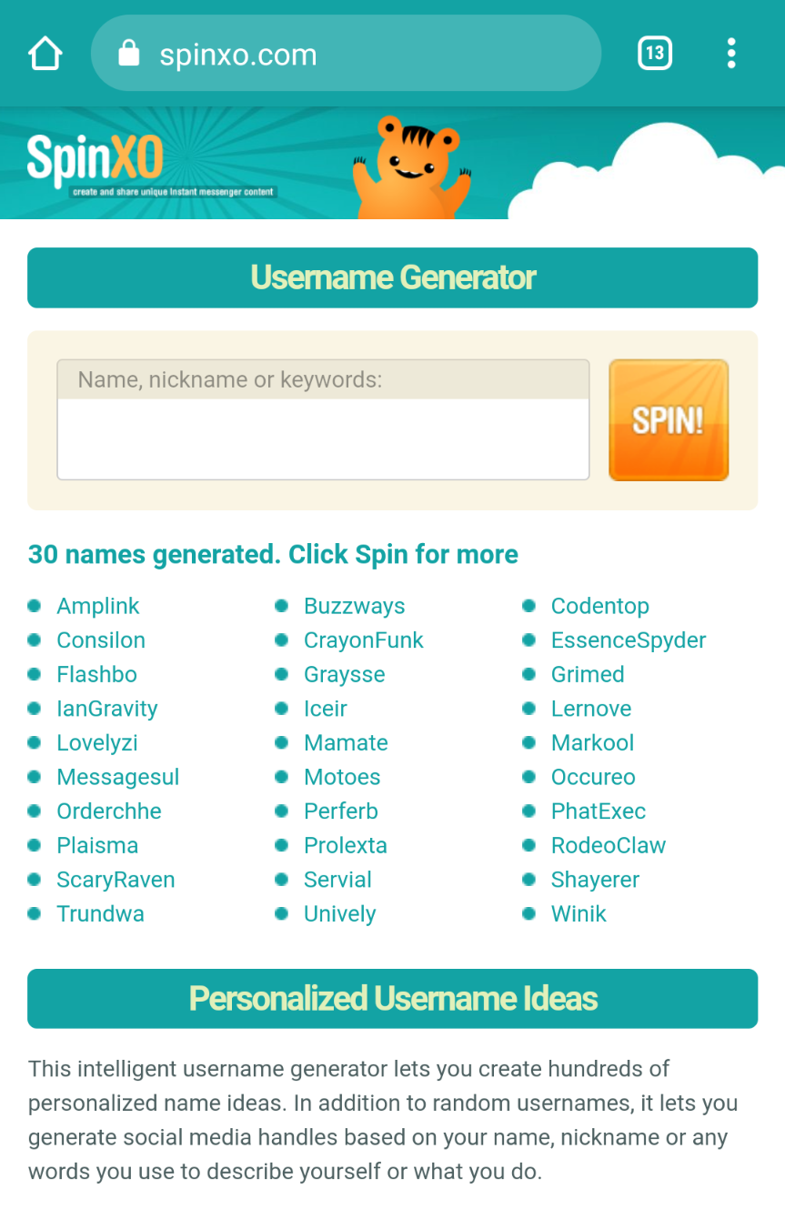SpinXO è solo un algoritmo, non ha la medesima capacità di un cervello umano, quindi alcuni username non saranno facili da generare.